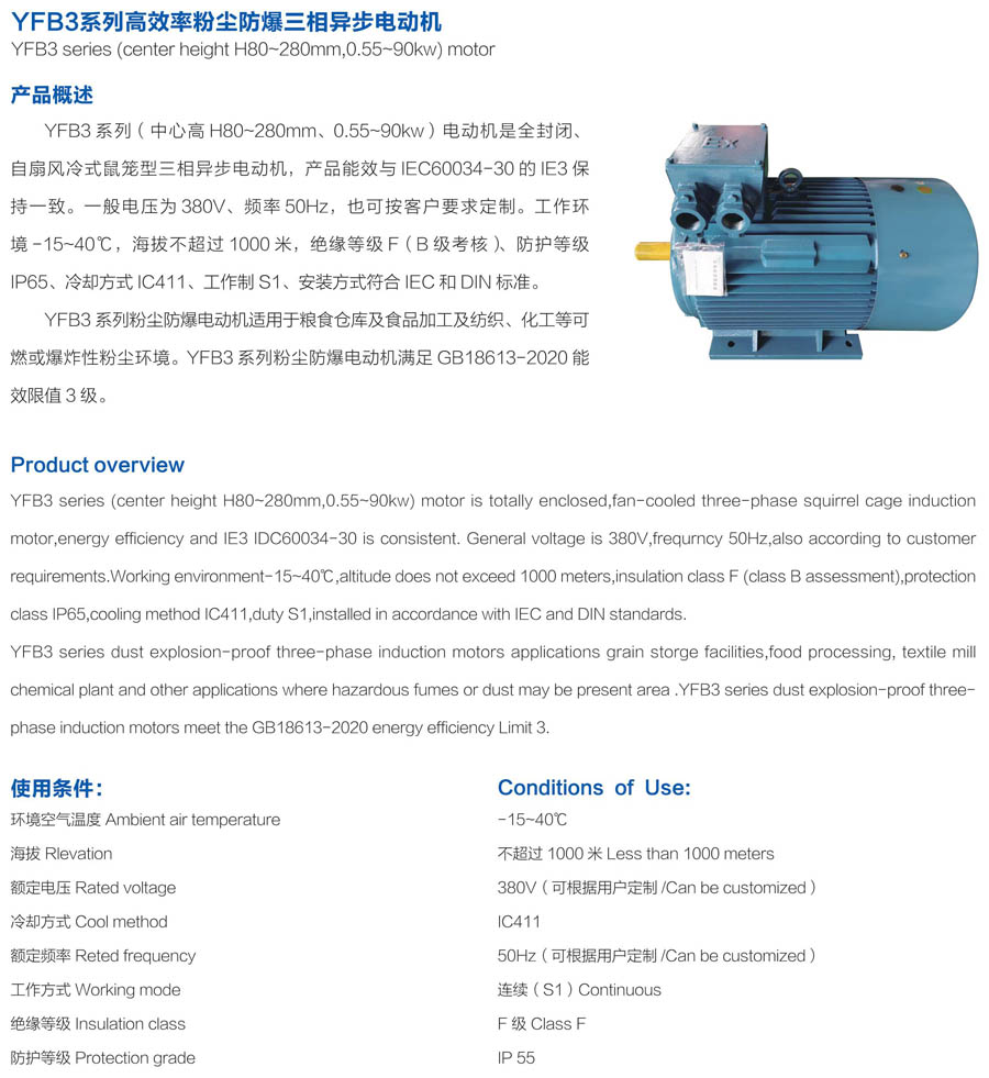 YFB3系列高效率粉塵防爆三相異步電動(dòng)機(jī)